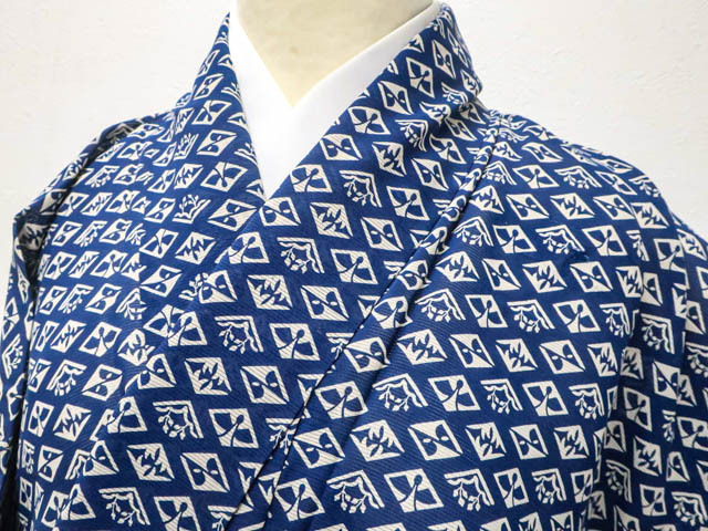 - 《古美術京松》リサイクル着物 小紋 昭和レトロ 夏物 夏 菱 正絹 身丈約155.5cm 裄丈62cm kyo7z08-885