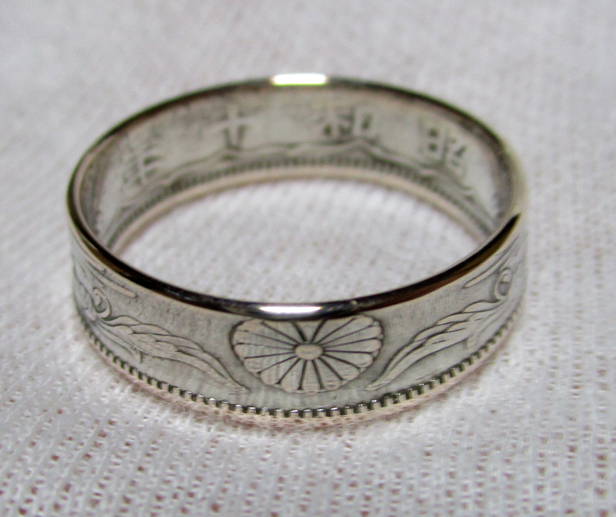 - 【s321】 コインリング☆小型50銭 銀貨☆ハンドメイド 18.5号 昭和十年 傷あり