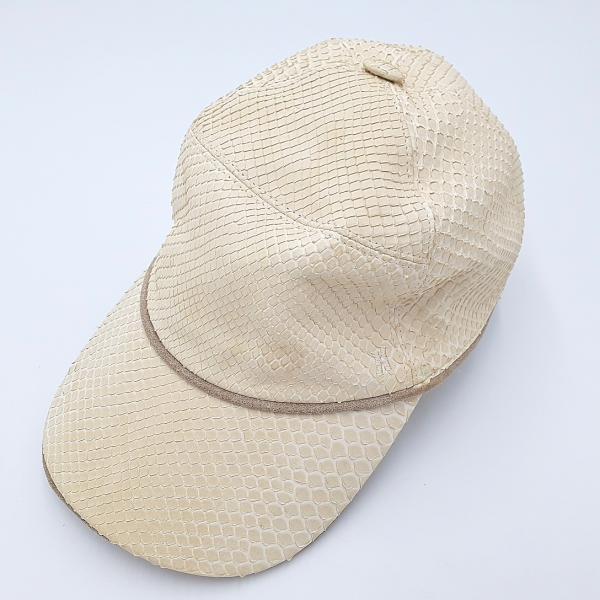 - エルメス Hロゴ セリエボタン ホワイト ヘビ革 キャップ 帽子 サイズ58 HERMES 内側に変色有り ◆2004