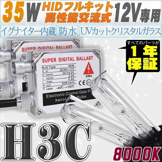 - 高性能 HIDキット 35W H3C 8000K 【交流式バラスト&クリスタルガラスバーナー】