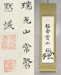 - 69◆初荷です ◆掛軸 瑞光山 常聚寺 黙誠 達磨図 「福寿寶山」画賛 真作 紙本 ◆紙箱 茶掛