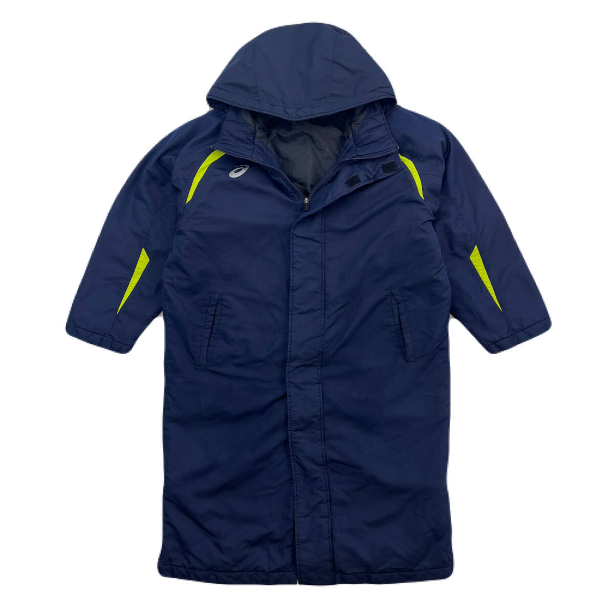 - アシックス ベンチコート ロング 濃紺 ネイビー 子供用 キッズ 150cm サッカーやスポーツの防寒に ●CA299