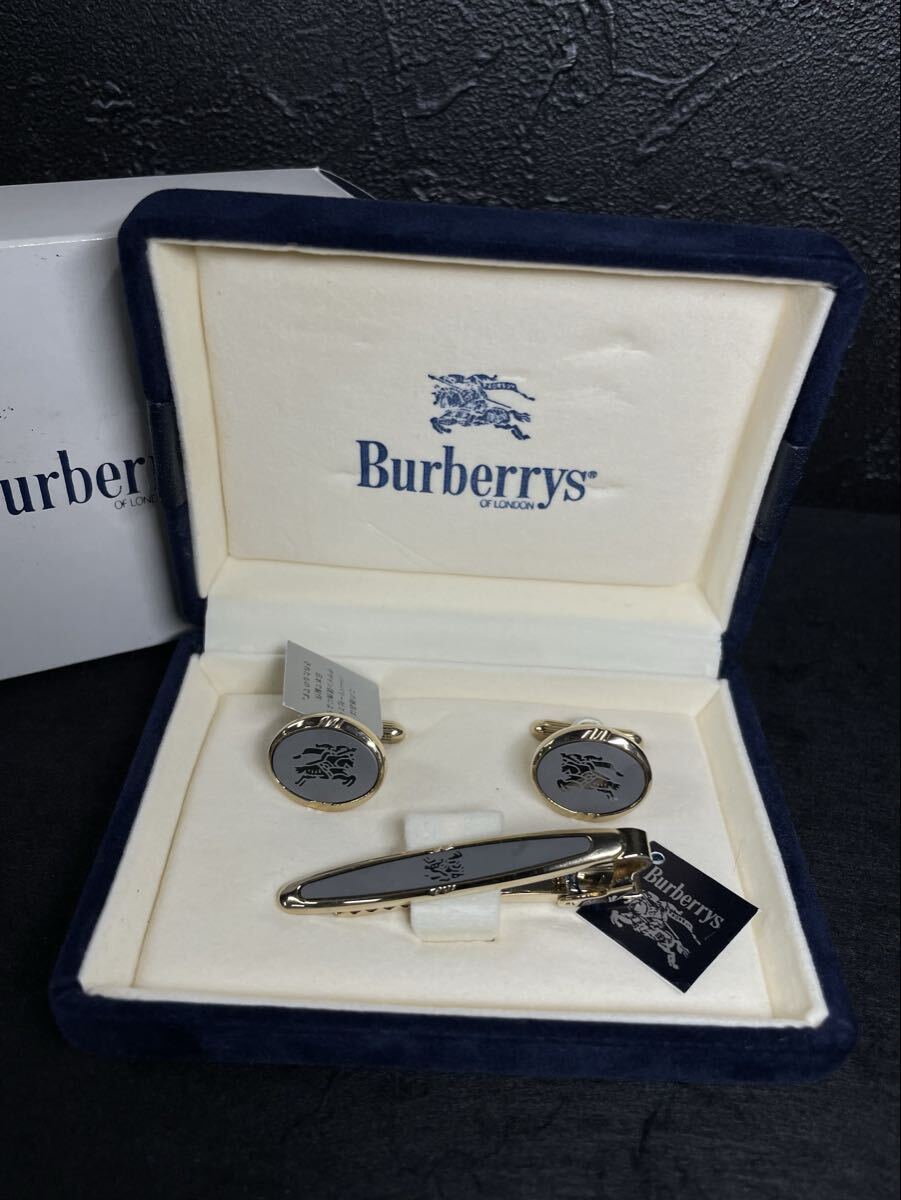 - B279★Burberry ネクタイピン カフス セット タイピン バーバリー ロゴ 紳士服 箱付き