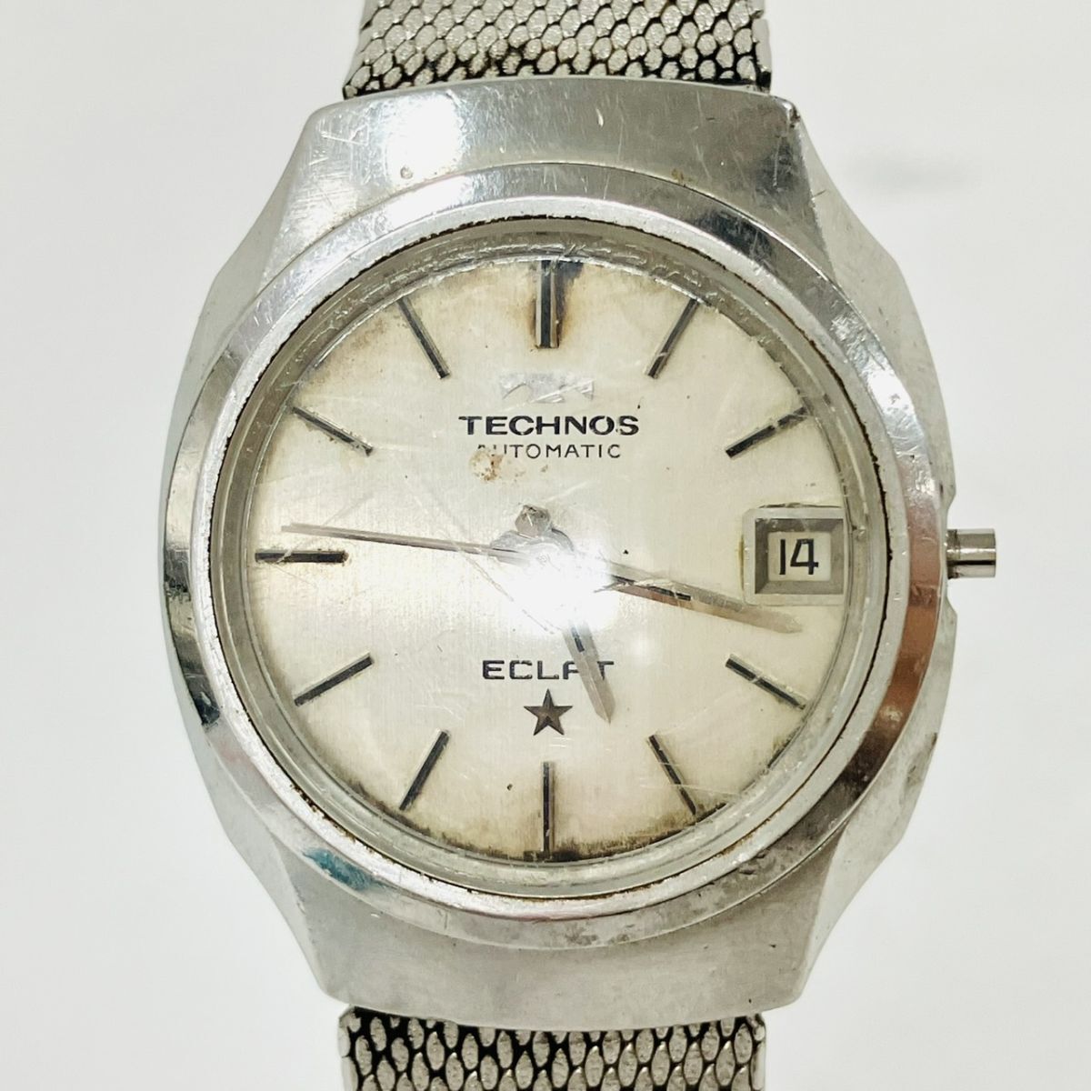 - S033-Z22-471 ◎ TECHNOS ECLAT テクノス エクラ 自動巻き デイト 腕時計 時計 アンティーク メンズ SA