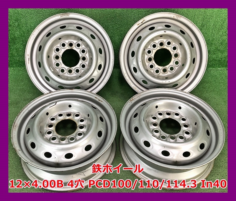 > ★12インチ 中古 鉄ホイール 4本 4穴 PCD100/110/114.3 IN40 ハブ70mm★