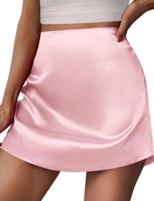- M1211 スカートレディース● 着心地抜群 20代30代40代 ●大活躍 光沢 ミニ丈 ピンク