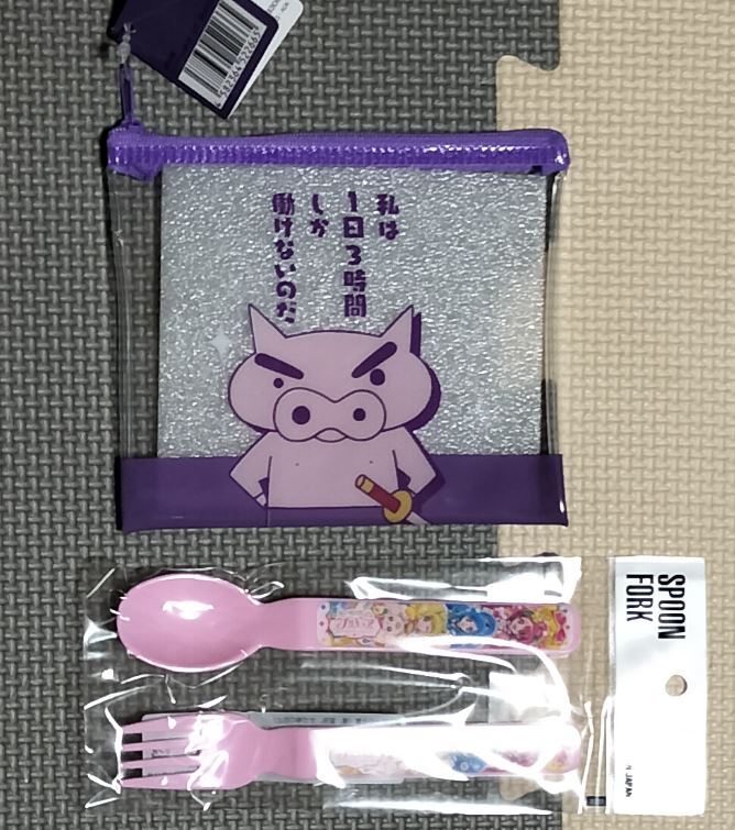 - 2個 まとめ売り クレヨンしんちゃん ぶりぶりざえもん ポーチ バッグ 財布 14cm ヒーリングっど プリキュア フォーク スプーン