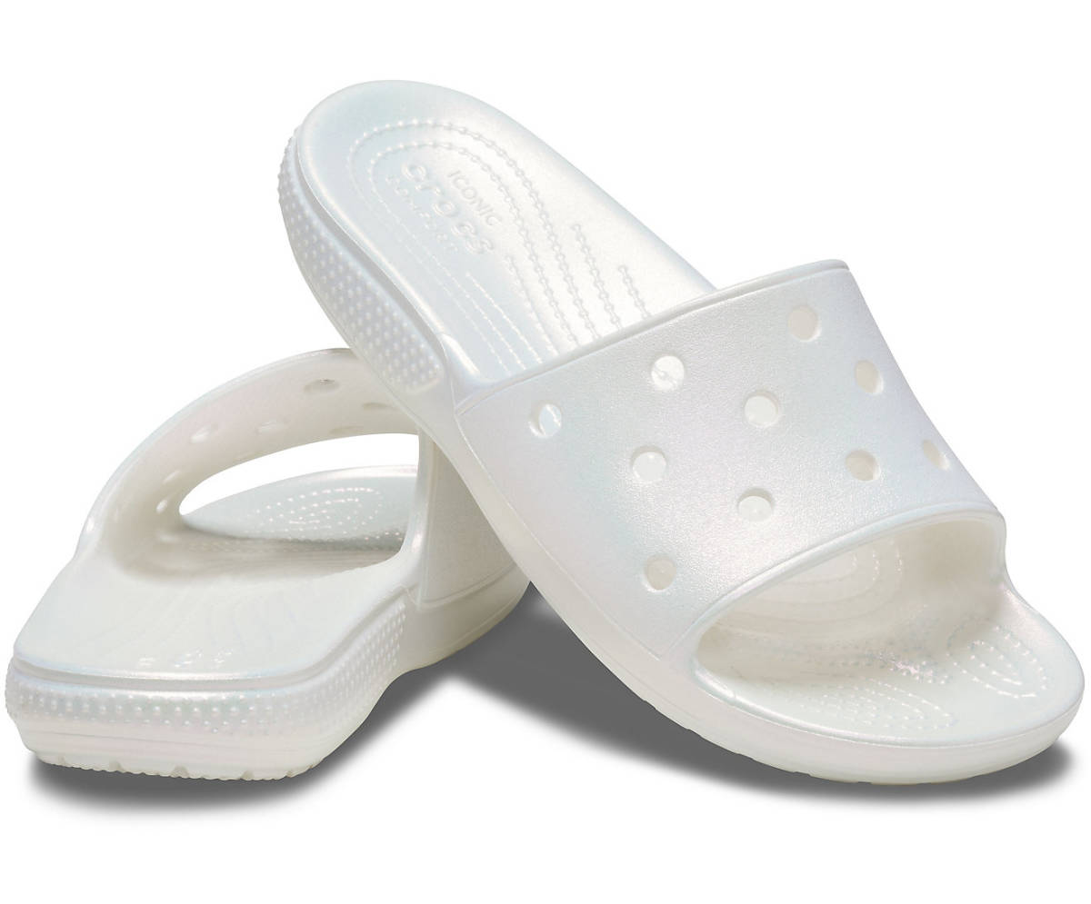 - 25cm Classic Crocs Iridescent Slide クラシック クロックス イリディセント スライド ホワイト white M7W9 新品