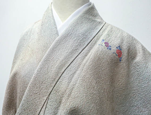 - 《京都一輝堂》【着物】 小紋 ふくれ織 金彩 万寿菊文様 身丈約159.5cm 裄丈約64cm 24z-2281
