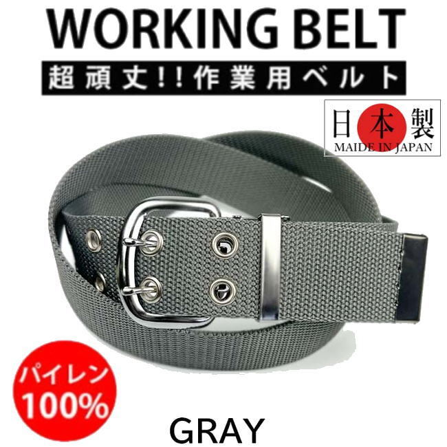 - グレー 日本製 041 作業ベルト ダブルピン 超頑丈 ワークベルト