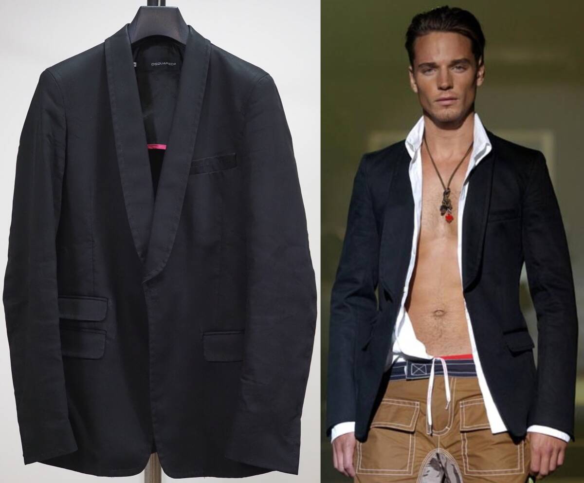 - ヴィンテージ05SSアーカイブ DSQUARED2 ディースクエアード コットンショールジャケット46黒 Italy製