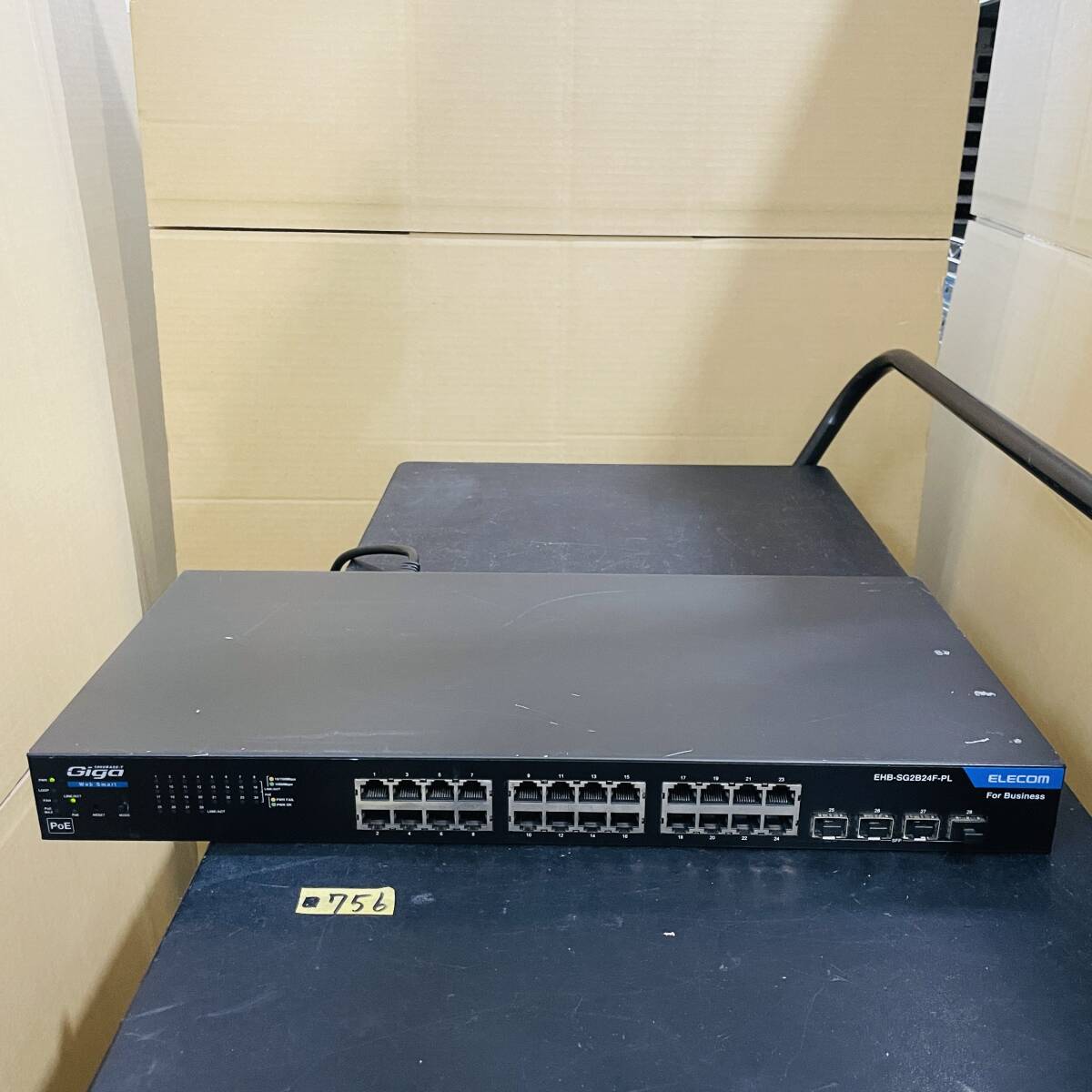 - (ヤ)■756【通電OK】ELECOM EHB-SG2B24F-PL レイヤー2 PoE Webスマートギガスイッチ RJ-45*24ポート SFPスロット*4ポート メタル ブラック