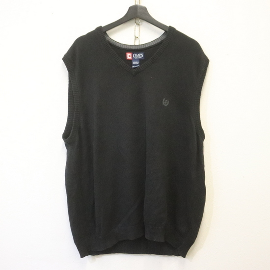 - n951 2000年代製 チャップス コットンニットベスト■00s 表記XLサイズ 黒 ブラック ワンポイントロゴ Vネック アメカジ ストリート 古着