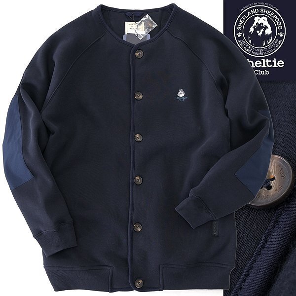 - 新品 シェルティークラブ 裏フリース スウェット ブルゾン M 紺 【SH1444221_79_M】 Sheltie Club カーディガン エルボーパッチ