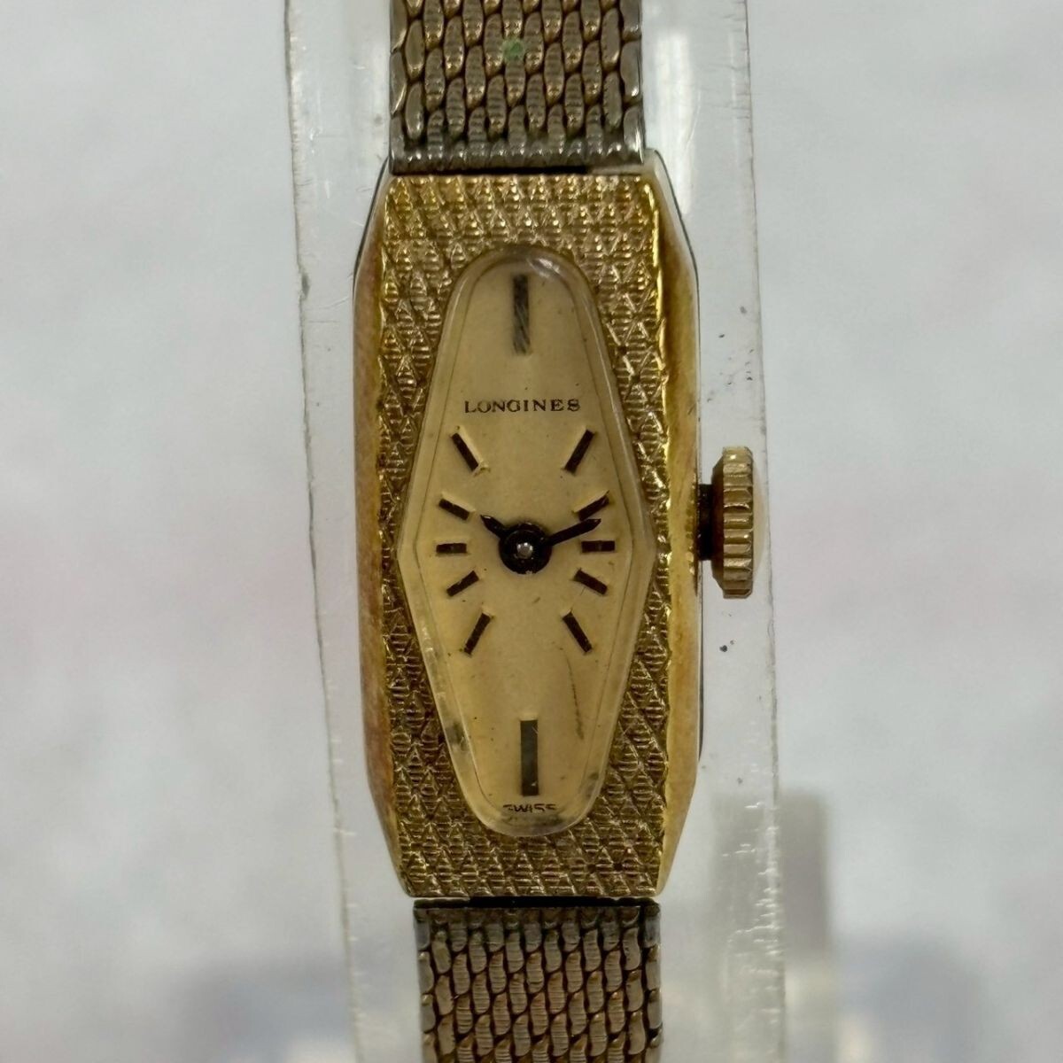 - E439-D1-2196◎ LONGINES ロンジン 手巻き ゴールド文字盤 スクエア 2針 レディース 腕時計 稼動 OA