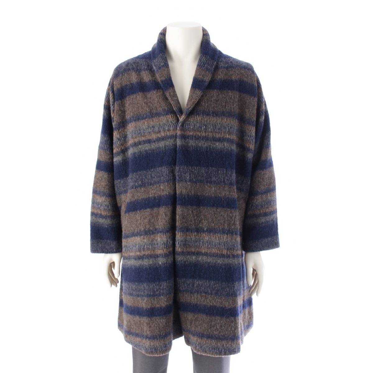- Plantation プランテーション ウール ニット ボーダー ロング コート PL84FA612 ブルー ブラウン 2 #A3750