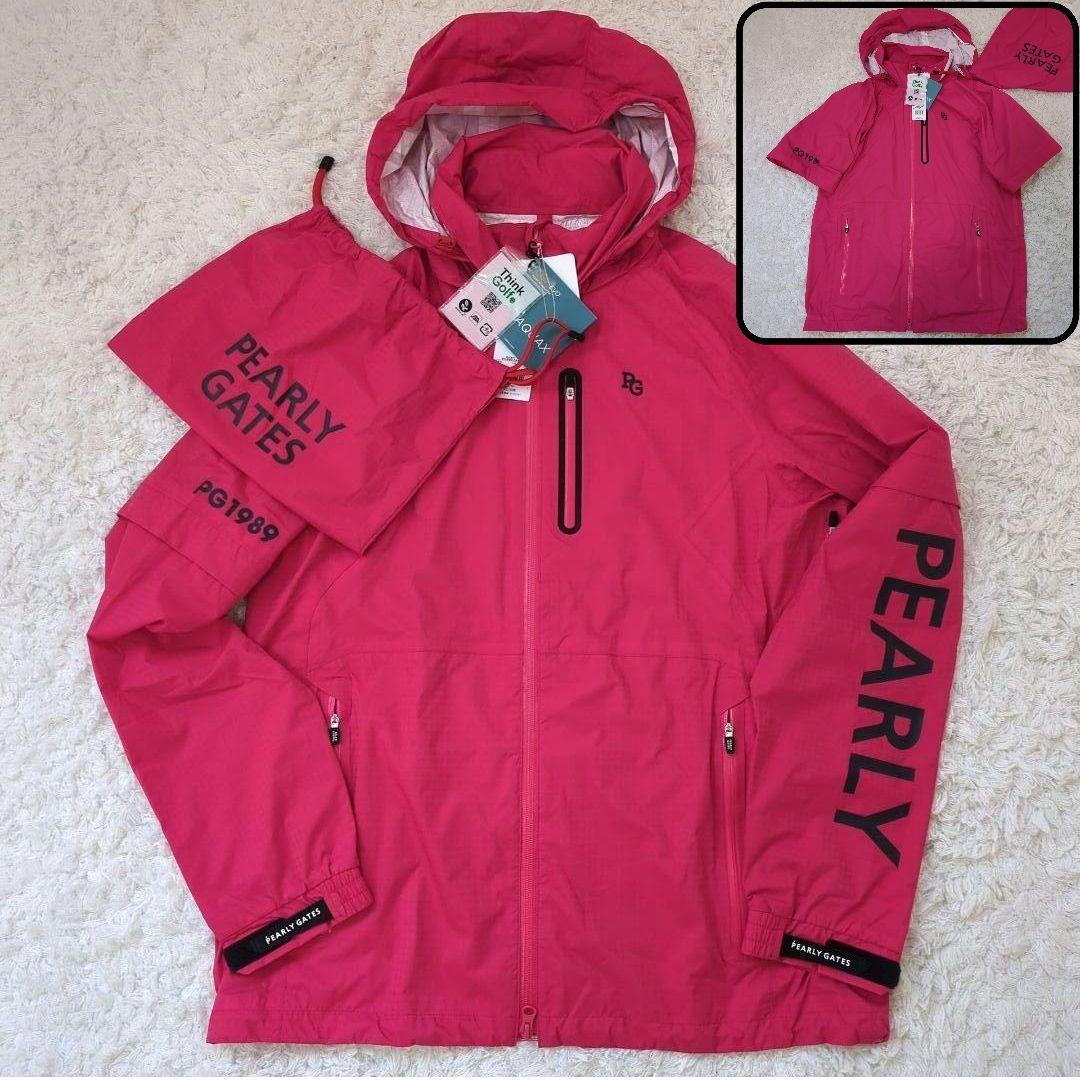 - 【新品未使用】半袖にもなる PEARLY GATES パーリーゲイツ XL レインジャケット AQUAX 防水 4WAY 半袖&長袖 大きいサイズ ピンク ロゴ