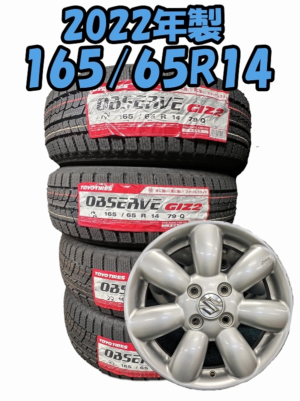 - 【セール品】2022年製 165/65R14 79Q TOYO OBSERVE GIZ2 新品 スタッドレス/中古 アルミホイール 4本【組み付け無料バランス込み】T-662