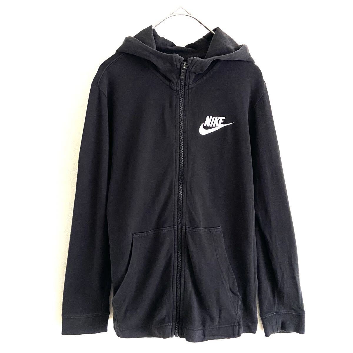 > 美品★【NIKE/ナイキ】ワンポイント刺繍ロゴ 薄手パーカー/黒/M表記/キッズサイズ/衝撃プライス!様々なシーンで大活躍★1点限定販売!C57