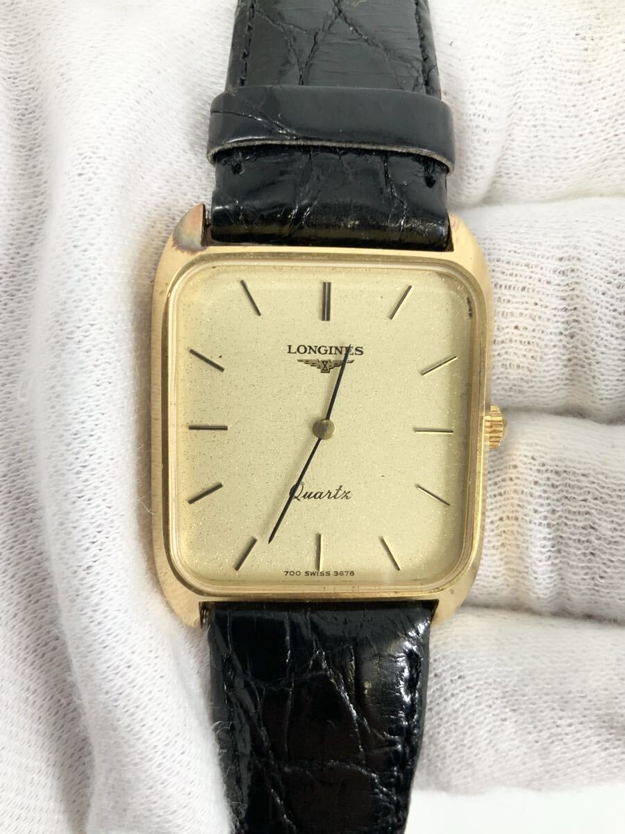 - 【13】時計 腕時計 ロンジン LONGINES クオーツ アナログ 現状品 ゴールド文字盤 2針 オールド スイス製 レザーベルト メンズ
