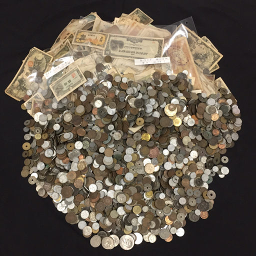 > 1円 日本 寛永通宝 五銭札 他 アメリカ 1ドル / ブラジル 50センターボ 含む 古銭 外国硬貨 古紙幣 セット 約17.3㎏