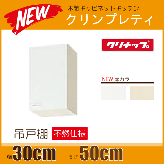 - 吊戸棚(不燃仕様) クリンプレティ 幅:30cm 高さ:50cm WGTS-30FL,WG4V-30FL,WGTS-30FR,WG4V-30FR クリナップ ★