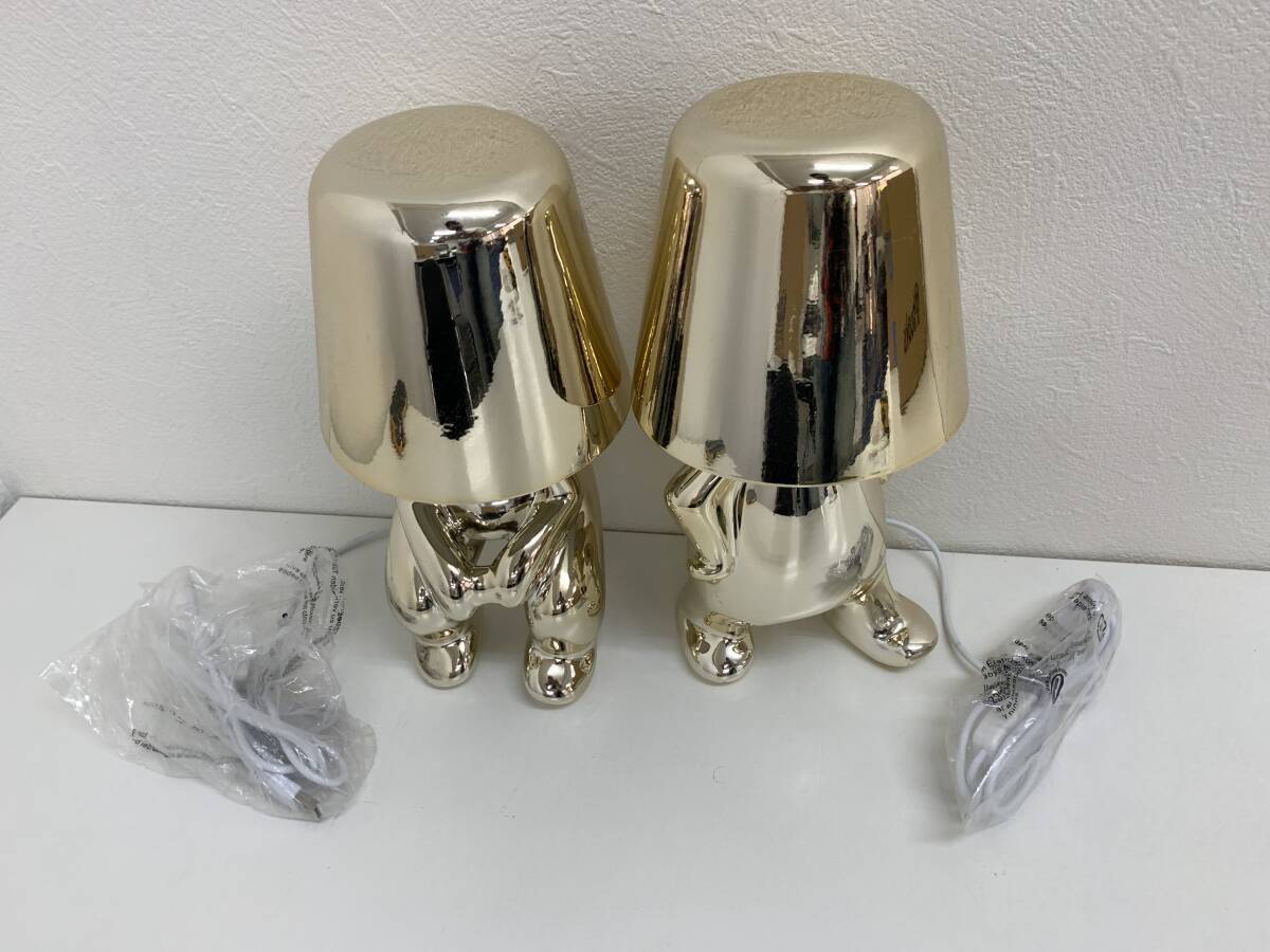 - 【希少デザイン】ゴールド テーブルランプ 2個セット インテリア オブジェ 照明 アート雑貨 (管理:KA03)