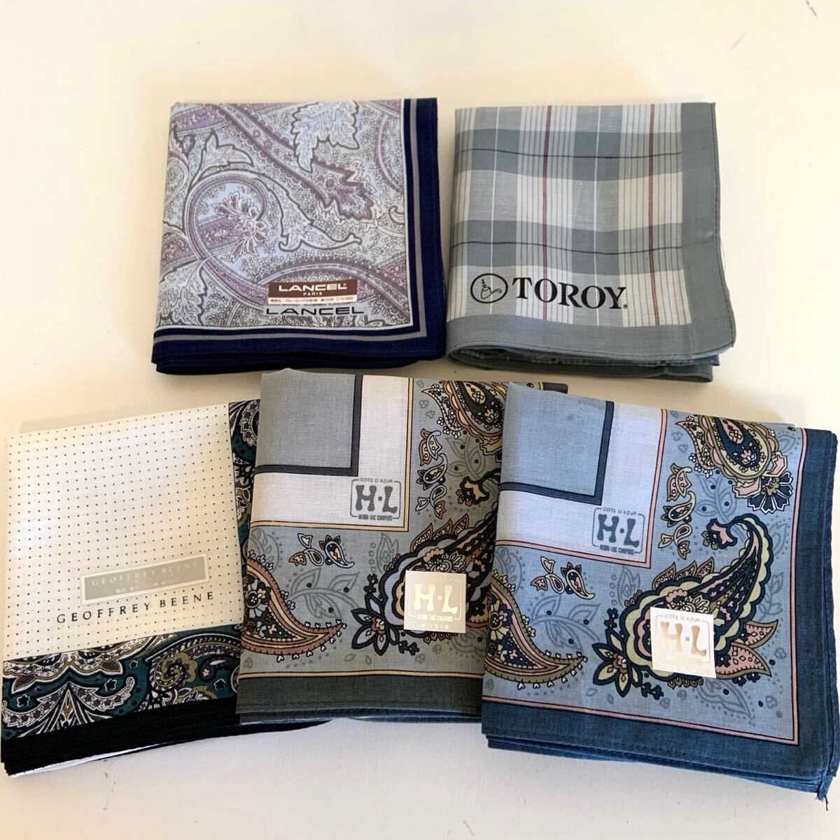 - 未使用 LANCEL ランセル TOROY トロイ GEOFFREY BEENE アッシュ・エル 大判 ハンカチ 5枚セット 綿100% メンズ 紳士 まとめ売り