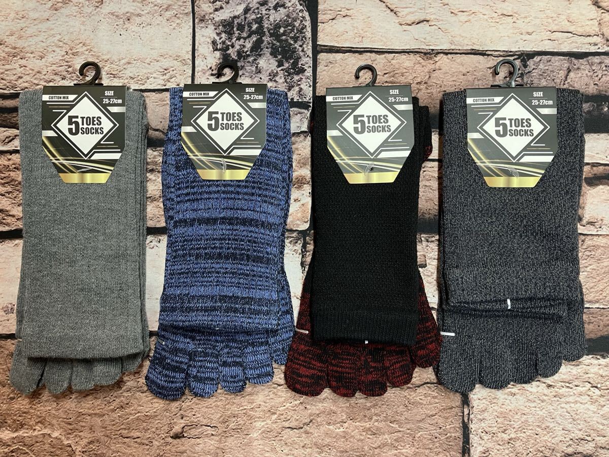 - 送料無料『画像から4足組』引き違い柄&無地&サポート付き!快適な履き心地!メンズ 綿混 5本指クルー丈ソックス