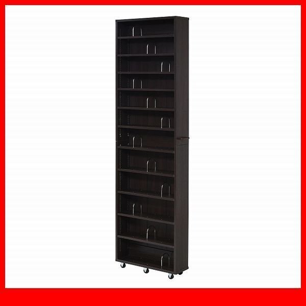 - 隙間家具★1cmピッチ大容量隙間ラック 幅16.5cm/本棚 CD DVD 多目的収納/ブックスタンド キャスター 転倒防止チェーン付/ダークブラウン/a1