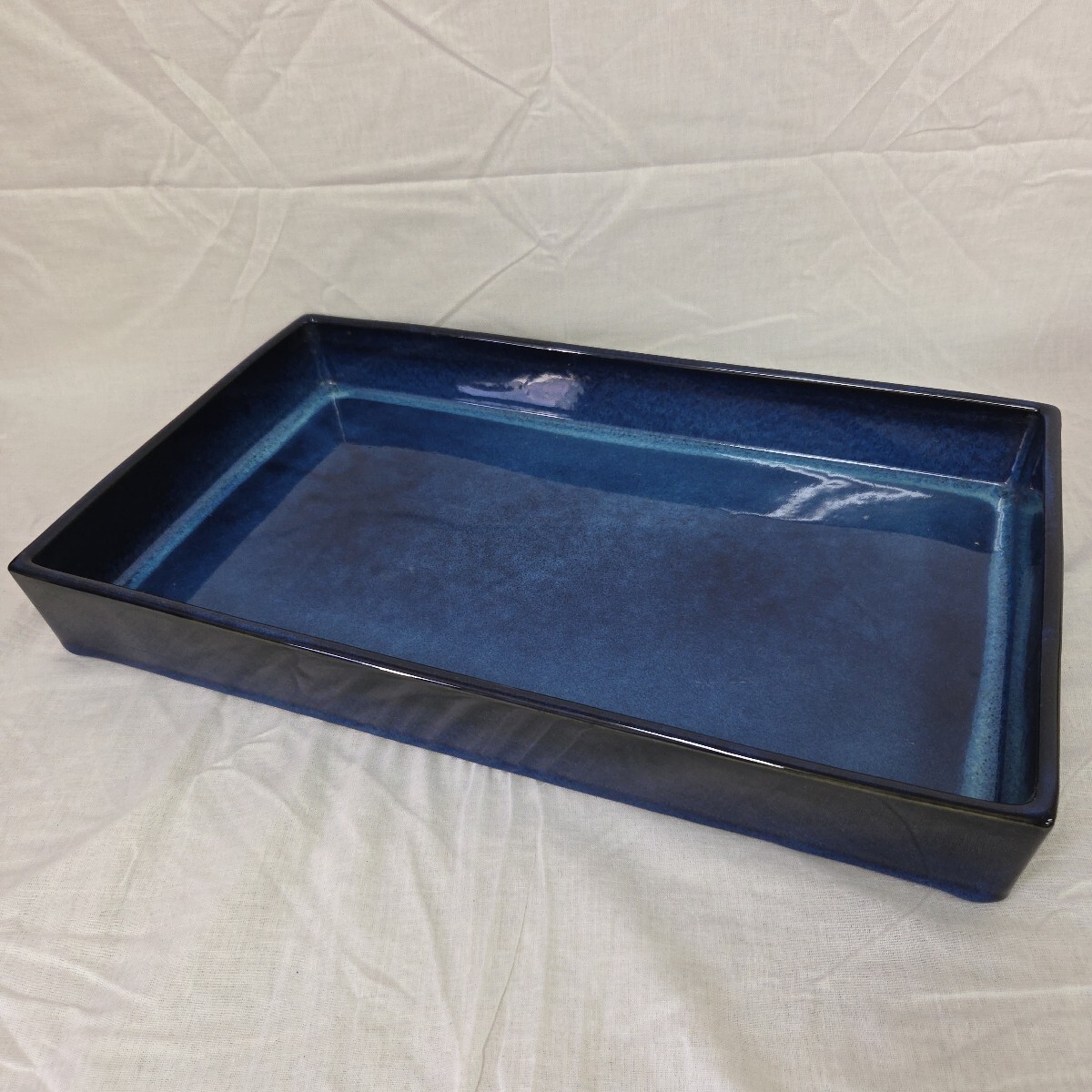 - 57 水盤 花器 華道具 陶器 ブルー 青 最終値下げ