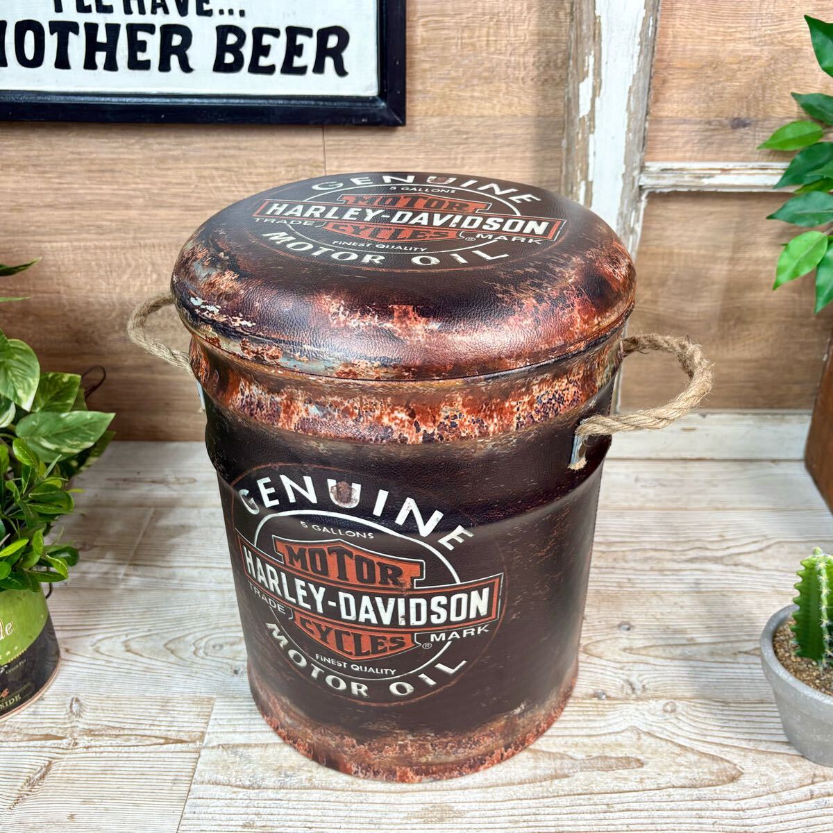 - 送料無料、アンティークヴィンテージ調レザードラム缶スツールS(G)、収納BOX付椅子、インダストリアルアイアンボックスケース、ペール缶
