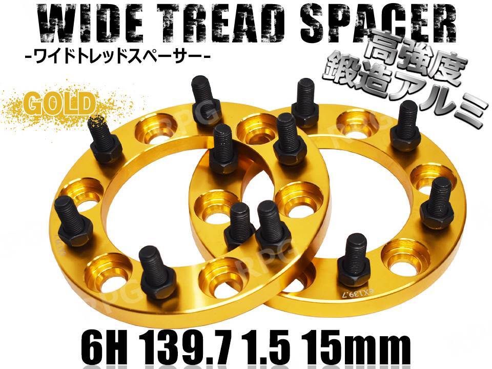 - ハイエース 200系 ワイトレ 6H 2枚組 PCD139.7-1.5 15mm ワイドトレッドスペーサー (金)