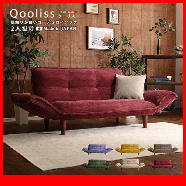 - ソファ★コンパクトソファ 2人掛け/背もたれ 肘掛け リクライニング/ポケットコイル/ロータイプ ハイタイプ/ベージュ 茶 緑 紺 赤 黄/zz
