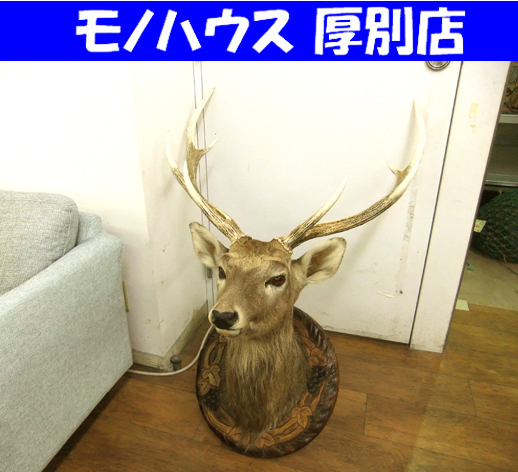 札幌市内近郊限定 エゾシカ ハンティングトロフィー 角部分長さ 約67cm 中古 オブジェ 鹿 札幌市厚別区 厚別店