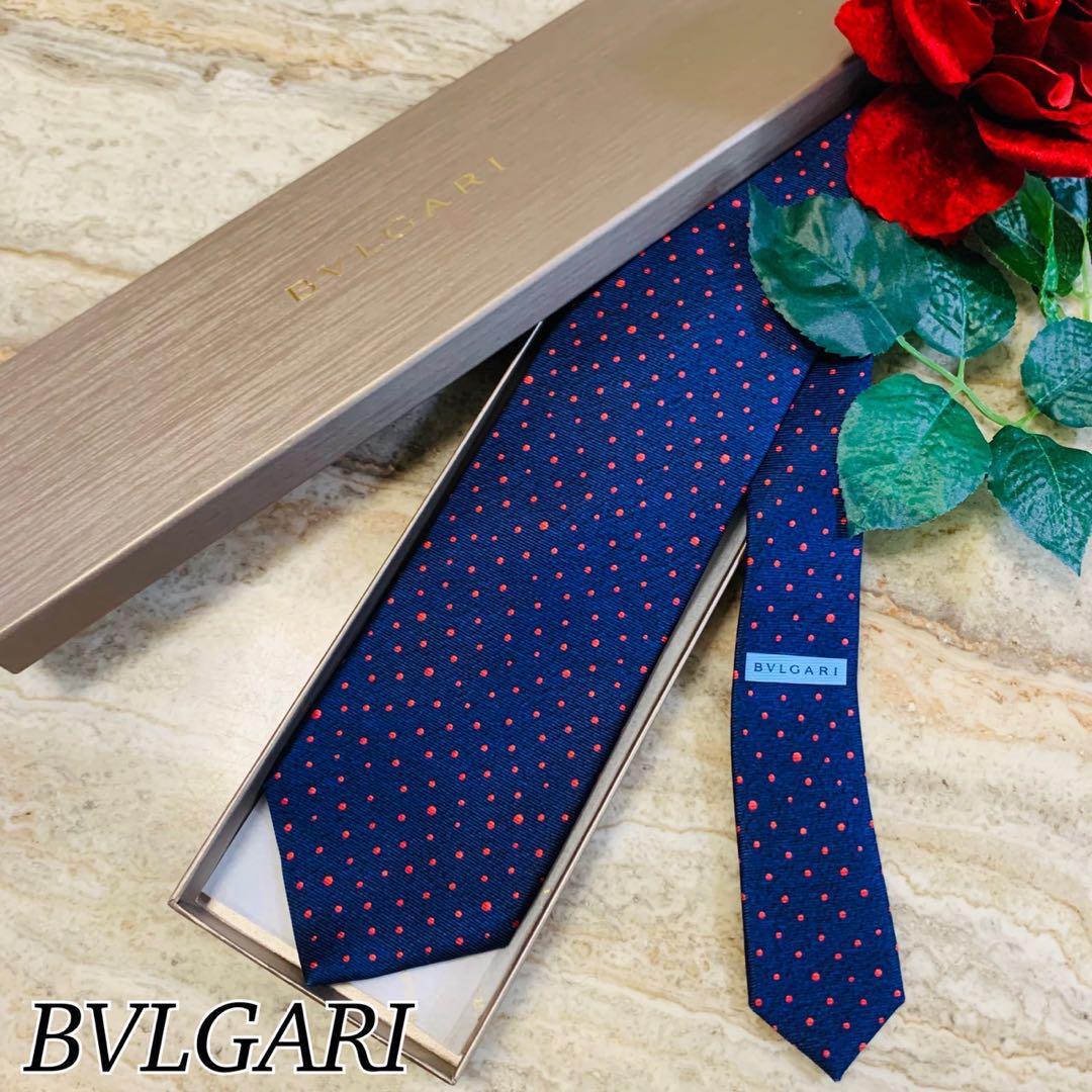 - N92 美品 ブルガリ セッテピエゲ 総柄 ドット柄 ネクタイ メンズ