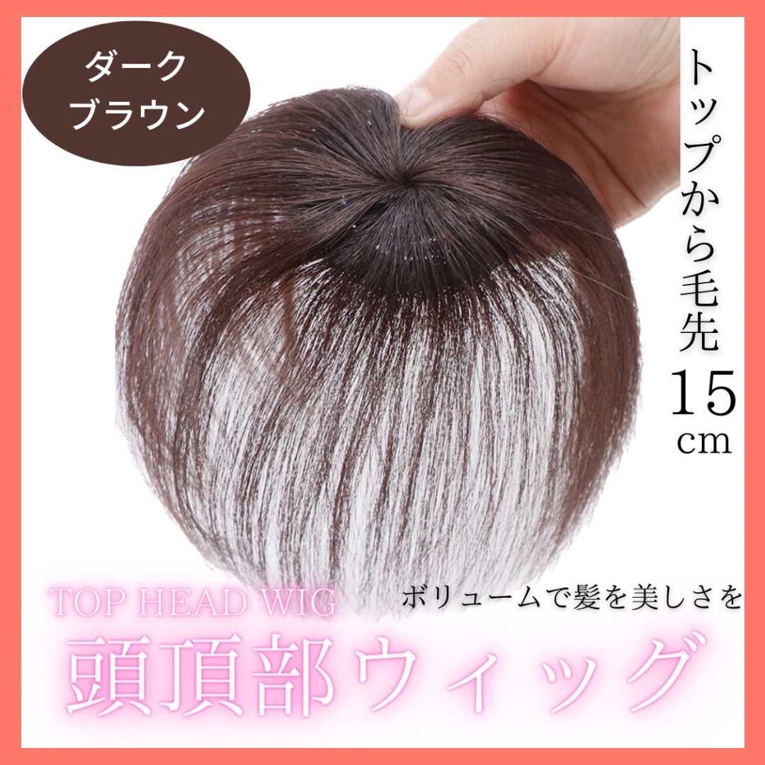 - 頭頂部ウィッグ 15cm ダークブラウン ヘアピース つけ毛 部分かつら 自然