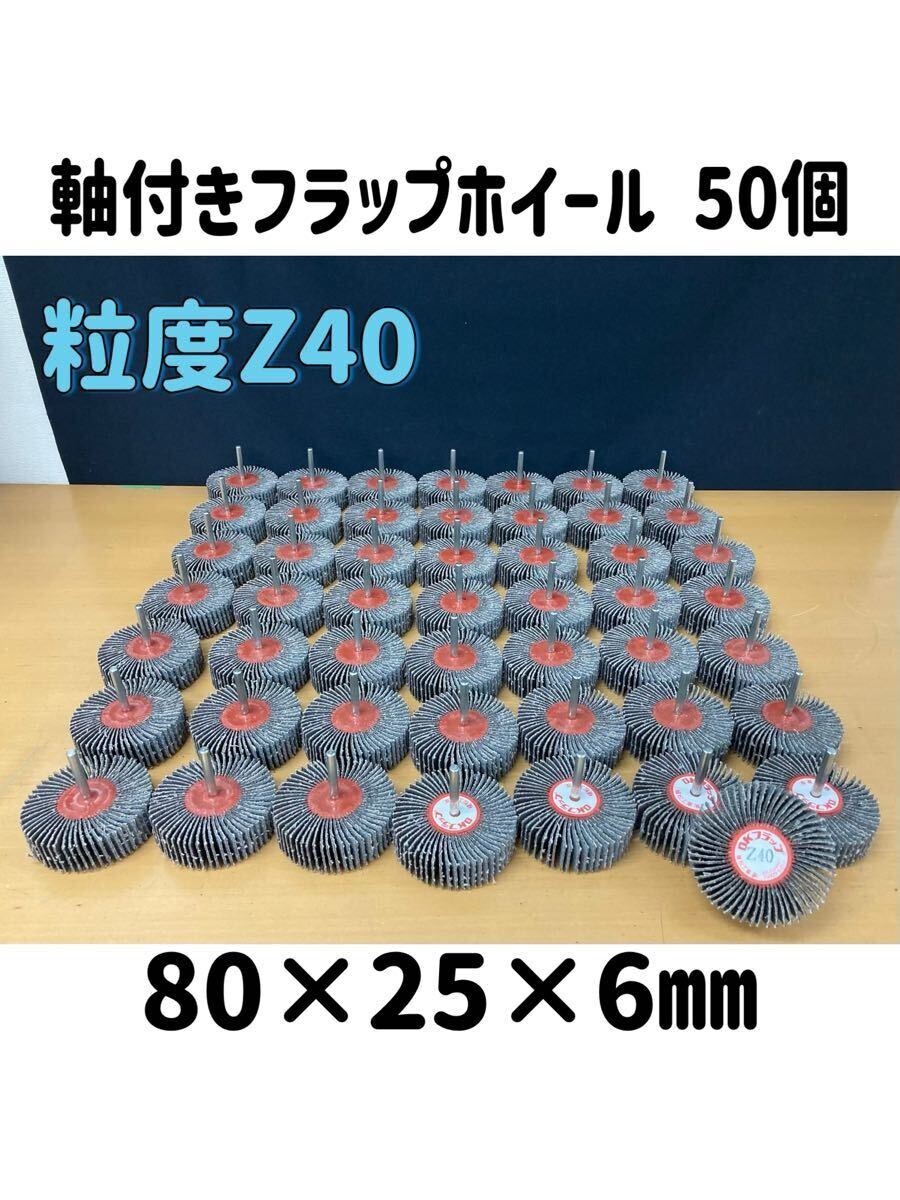 > 堀41) 軸付きフラップホイール 50個セット 粒度40番 80×25×6 Z40 フラップホイール OK グラインダー 研磨 研削 工具 (251008 台)