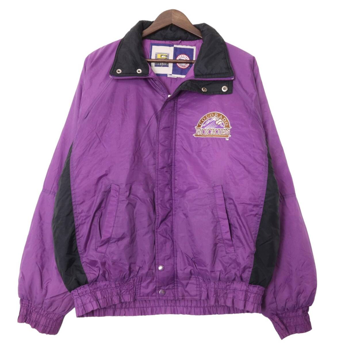 > 90年代 COMPETITOR MLB コロラド・ロッキーズ 中綿 ナイロンジャケット パープル (メンズ XL) 中古 古着 A0889