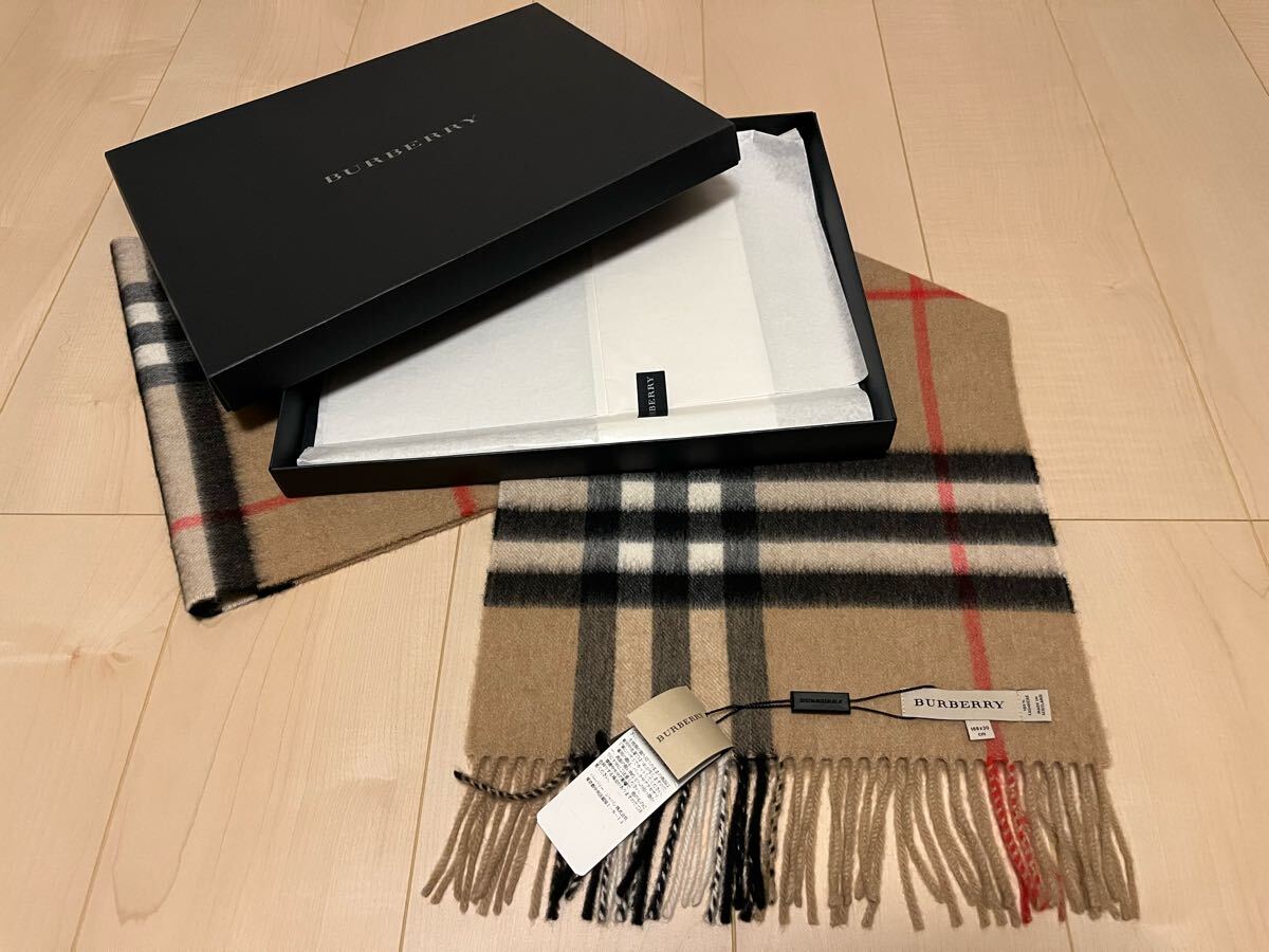 - BURBERRY バーバリー マフラー カシミア100% タグ付き未使用品 キャメル 送料無料!!