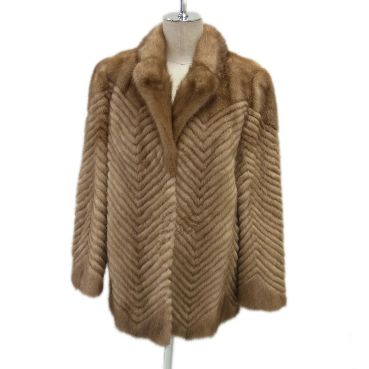 > 美品 高級毛皮 国産品◇シェブロンカット ミンクコート ブラウン MINK FUR 毛艶 毛並 皮質 良好 11号 レディース