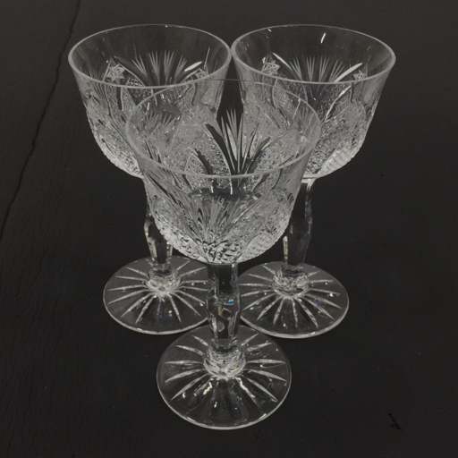 > メーカー不明 カットデザイン ワイングラス 口径7cm 高さ約13.7cm 食器 テーブルウェア 計3点 セット 現状品