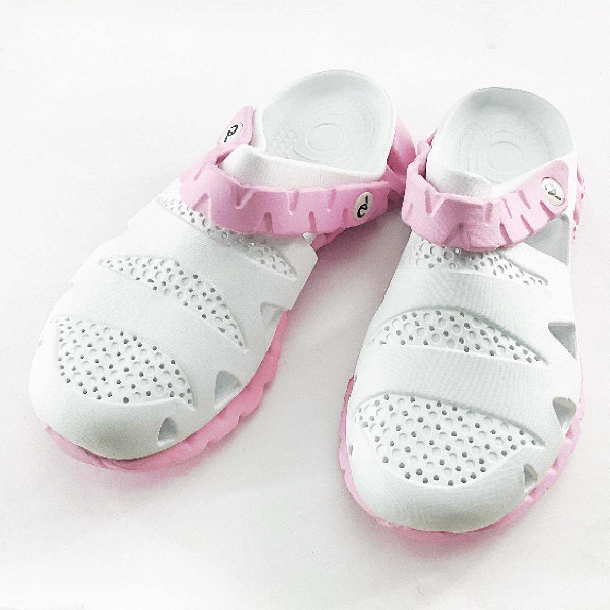 - 2WAYギザギザソール EVAサンダル 軽量 看護師 介護士 LL 24.0~24.5cm ホワイトxピンク