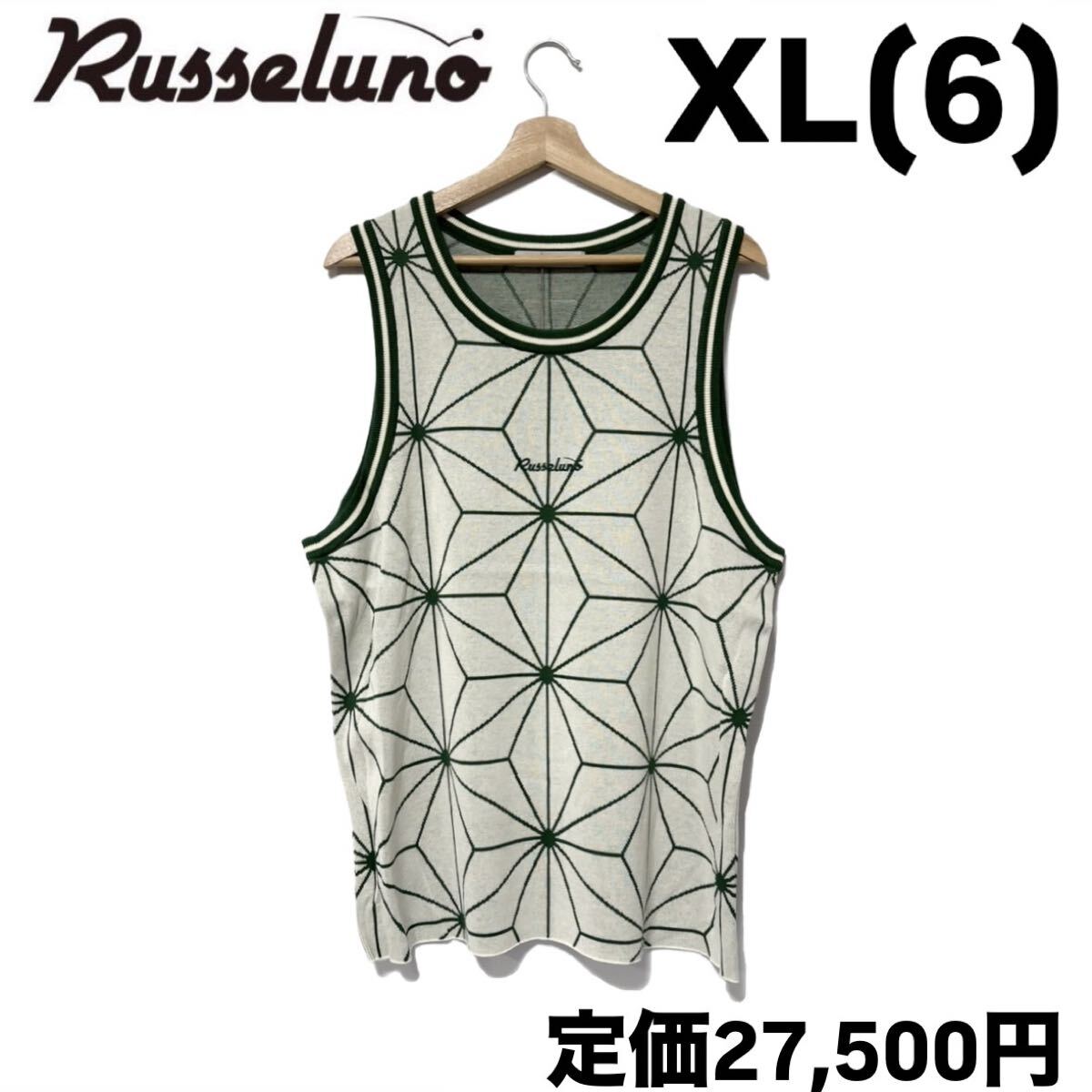 - 新品 ラッセルノ ゴルフ ゲーム ニット ベスト 幾何学柄 ホワイト XL 6 ゴルフウェア RS-2330502