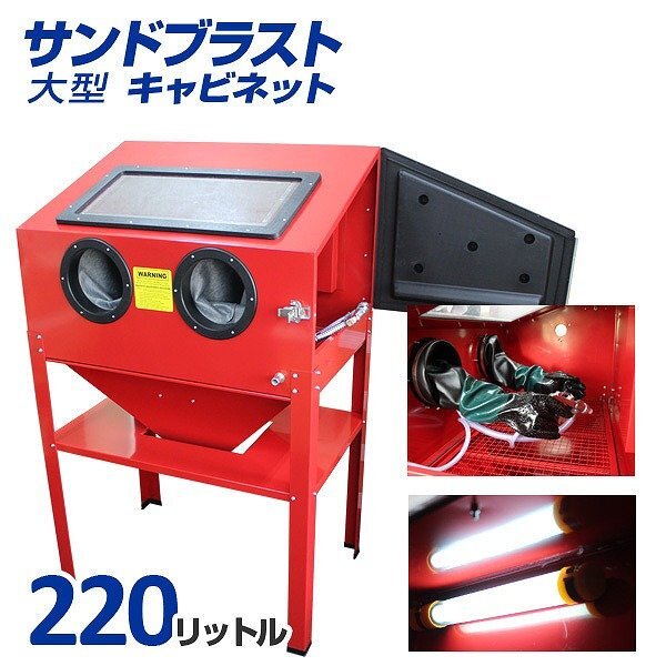 - 新品未使用 サンドブラスト キャビネット 大型 220L 室内灯付き グローブ ガンセット サンドブラスター 研磨機 塗装 板金 下地 剥離 錆取り
