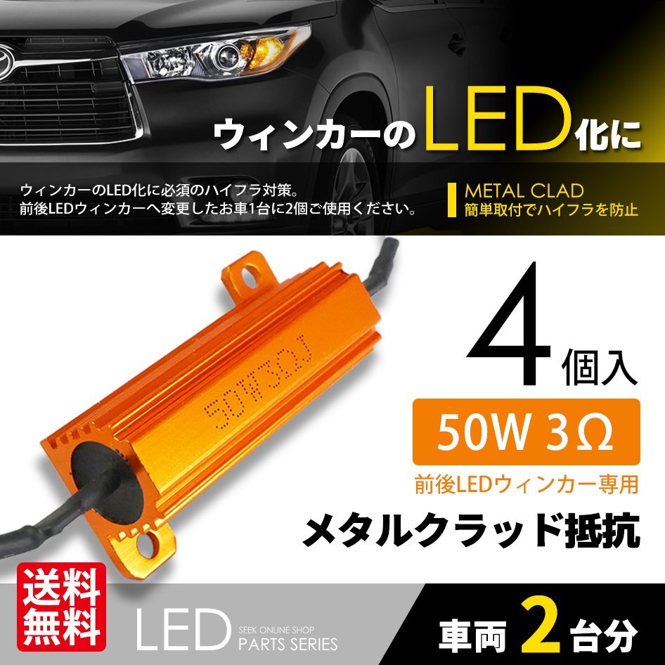 > 抵抗器 4個 LED化 必須ITEM 50W 3Ω LEDウインカー ハイフラ防止 キャンセラー カーアクセサリー 安心の国内検査 ネコポス 送料無料
