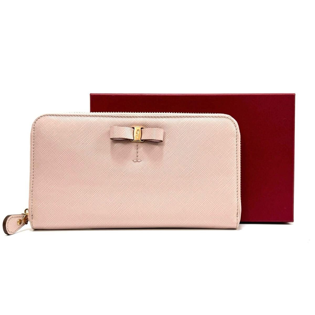 - サルヴァトーレ フェラガモ 長財布 ロングウォレット ヴァラ リボン ピンク ゴールド レザー ラウンドファスナー IY-22 B044 Ferragamo