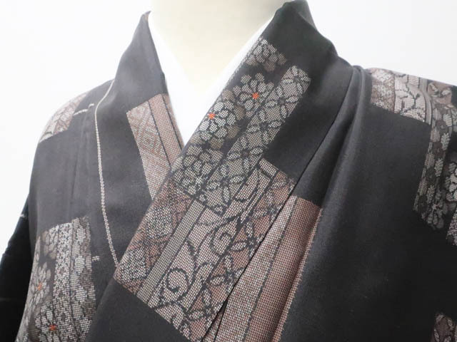 > 《京都一輝堂》【着物】大島紬 唐草・花菱・亀甲柄 しつけ付 身丈約162cm 裄丈約63cm 25z03-1279