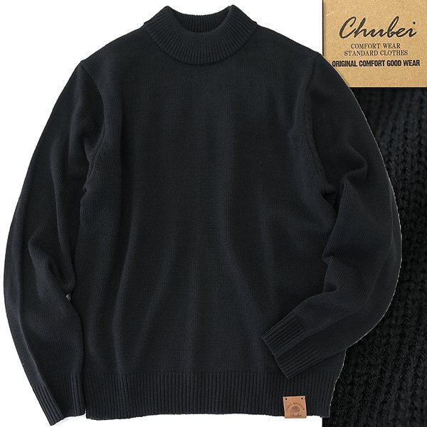 - 新品 チュウベイ ウール混 モックネック ニット セーター L 黒 【CH1444332_99_L】 秋冬 CHUBEI 洗える ハイネック プルオーバー