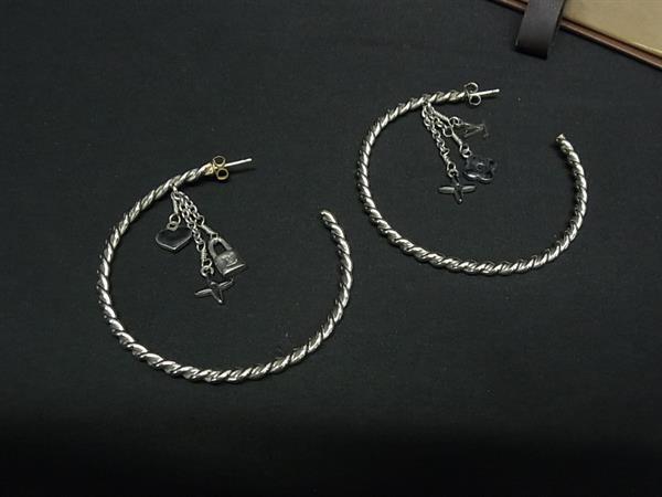- 1円 ■美品■ LOUIS VUITTON ルイヴィトン M65679 ロゴ ハート フープ ピアス アクセサリー レディース シルバー系×ブラック系 FU2642